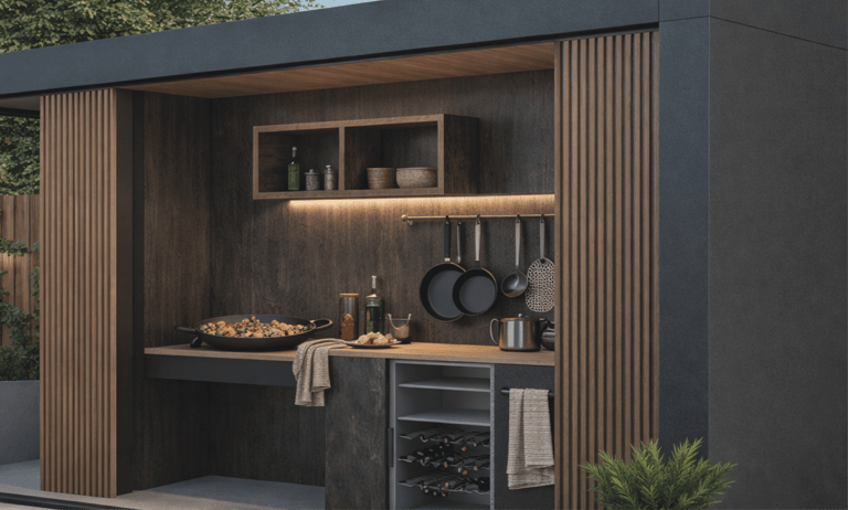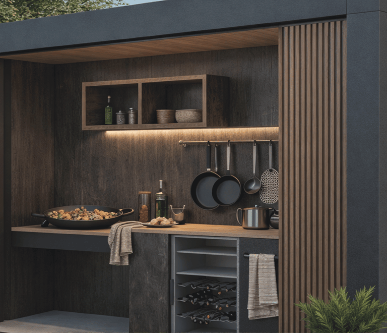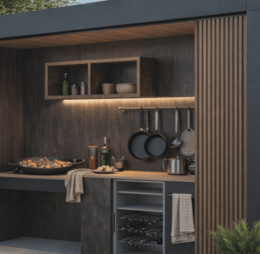 En ABBAR diseñamos y fabricamos cocinas de exterior a medida para terrazas y jardines en Barcelona y alrededores, pensadas para resistir la intemperie y un uso intensivo. Partimos de un replanteo real del espacio y de cómo vas a cocinar: número de comensales, zona de apoyo, almacenaje y conexiones. A partir de ahí definimos la estructura, los materiales y la distribución para que la cocina sea cómoda, segura y duradera, con un resultado estético alineado con tu vivienda o proyecto.