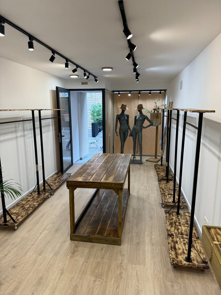 desarrollamos la obra de un local de ropa, diseñando y fabricando mobiliario a medida para optimizar la exposición del producto y la experiencia en tienda. Realizamos percheros, mesas de exhibición, un mostrador y varios muebles complementarios, cuidando proporciones, recorridos y capacidad de almacenaje.
