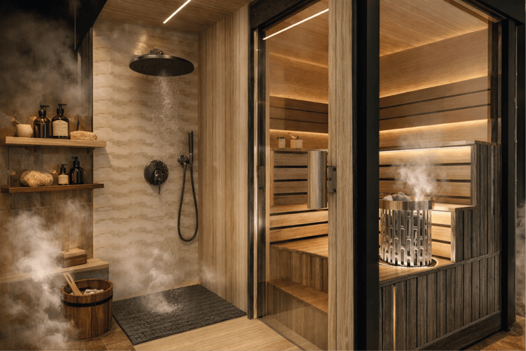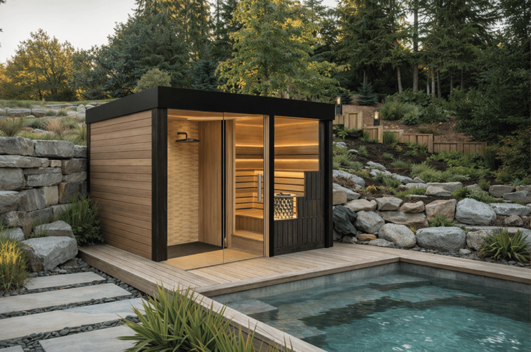 Cada sauna prefabricado ABBAR se fabrica mediante procesos de construcción industrializada, lo que garantiza precisión en medidas, repetibilidad, control de calidad y tiempos de instalación reducidos. El trabajo en taller permite llegar a obra con un módulo listo, minimizando interferencias y acelerando la puesta en marcha. Utilizamos maderas seleccionadas, aislamientos térmicos de alto rendimiento y estructuras optimizadas para asegurar una excelente conservación del calor, un consumo energético contenido y una experiencia de uso superior. Además, cuidamos los detalles que marcan la diferencia: encuentros, sellados, ventilación, accesos y acabados interiores, para que el confort se sienta desde el primer uso.