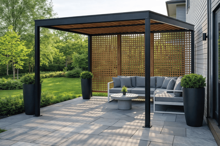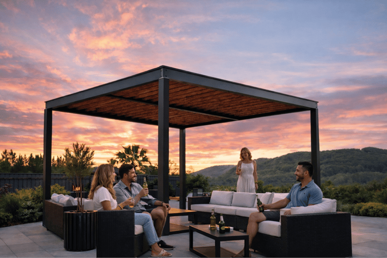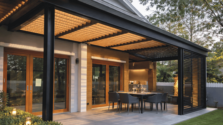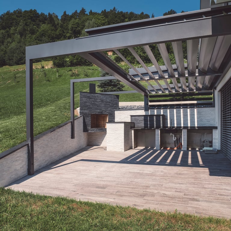 En cuanto a cubiertas, trabajamos con opciones como lamas fijas, policarbonato, vidrio laminado/templado, panel sándwich o toldo textil, además de combinaciones según orientación y clima. Para completar el conjunto, también realizamos tarima exterior (deck) y su estructura, creando una base resistente y coherente con la pérgola para un resultado integral y listo para disfrutar.