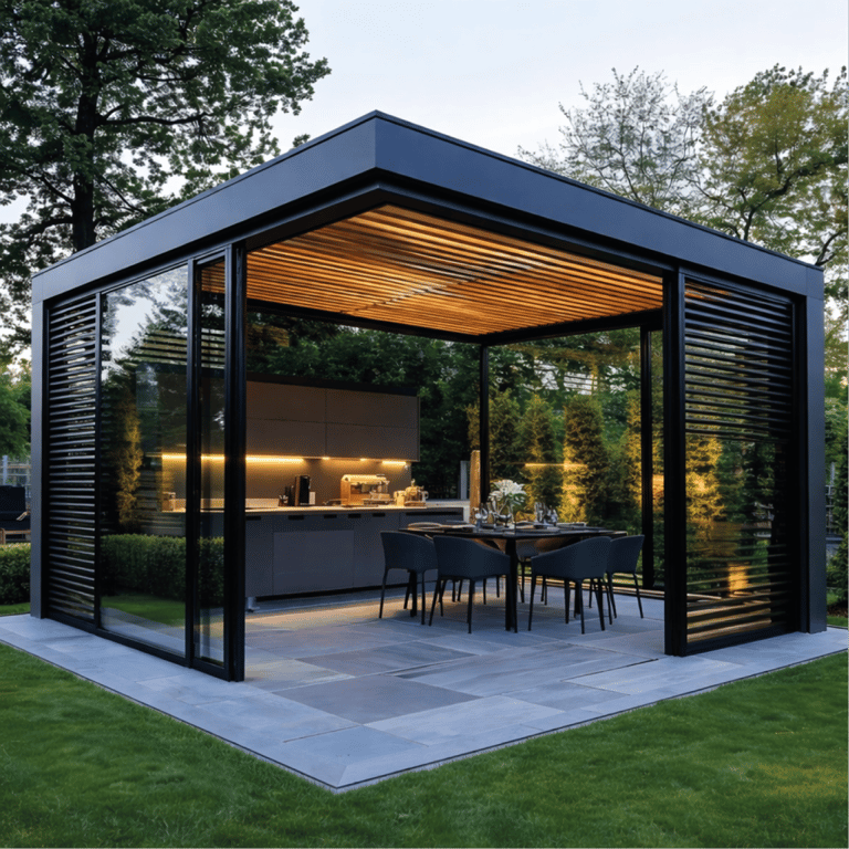 En ABBAR diseñamos y fabricamos pérgolas a medida para terrazas, jardines y espacios comerciales en Barcelona y alrededores. Desarrollamos distintas tipologías según el uso y el nivel de protección buscado: pérgolas adosadas a fachada o autoportantes, con configuraciones abiertas, semi-cerradas o cerradas mediante laterales y cerramientos.